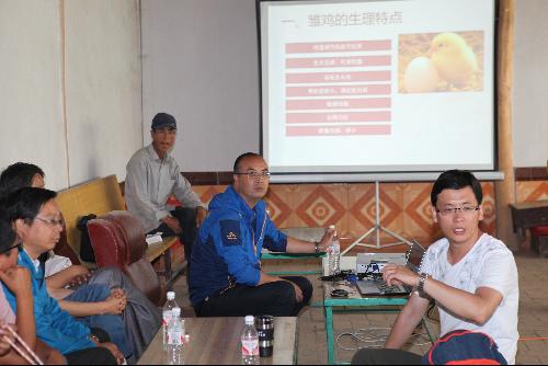 首先挨家挨户走访了9家结对贫困户家庭,详细了解他们的家庭情况、基本收入来源以及致贫的主要原因,然后分别同9家贫困户签订了干部职工结对认亲卡,并发放了米、茶叶和衣服等慰问品。随后,在驻村第一书记仁增多杰的带领下实地考察了有关扶贫项目的进展情况。之后,扶贫工作组丁保安、司剑华教授组织村里养殖群众分别进行了“海东鸡的养殖技术”和“枸杞种植技术”示范培训,生动易懂的讲解,手把手的示范,得到当地群众一致好评。