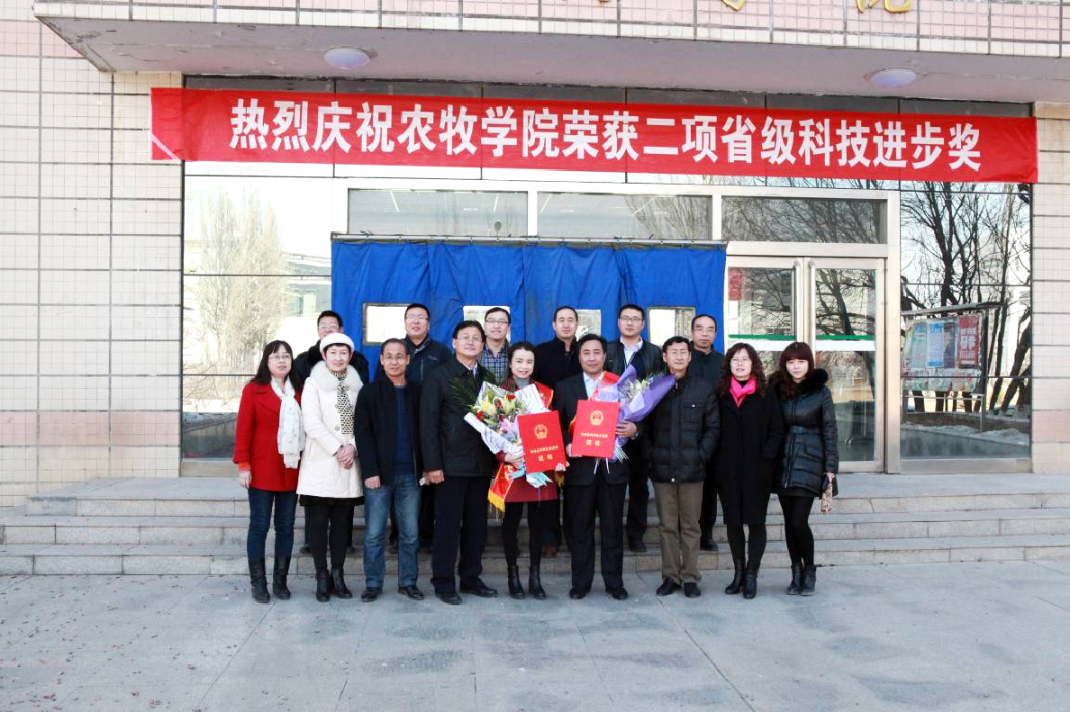 由侯生珍教授团队领衔主持完成的“藏羊高效养殖技术”成果获得2016年度青海省科学技术进步一等奖,亦是我校教学单位科研成果获得省级一等奖的历史性突破。该成果以解决高寒牧区藏母羊繁殖性能低下和羔羊生长发育缓慢等瓶颈问题为切入点,历经8年的试验攻关和示范推广取得了重大的技术突破。彻底改变了高寒牧区传统藏羊养殖生产方式。创新研发的藏羔羊早期断奶技术成果,实现了羔羊6月龄出栏的重大突破,为藏母羊实施均衡生产奠定了基础,用技术手段破解了藏羊生产周期缓慢的根本制约,是藏羊养殖的一次重大变革。其次,实现了高寒牧区藏羊高效生产的技术创新。依靠基础研究和原始创新,在国内首次研发、集成了藏羊不同生理阶段精准补饲技术,为实现藏羊均衡生产提供了坚实的技术基础。同时,助推了高寒草地生态保护新模式的建立。母羊枯草期放牧时间较传统养殖日均缩短2-3小时,天然草场放牧压力和载畜量降低20%;羔羊早期断奶、半舍饲高效养殖技术,实现当年羔羊6月龄出栏,相当于天然草场承载压力降低了50%。有效破解了生产与生态之间的固有矛盾,取得了良好的经济、生态和社会效益。