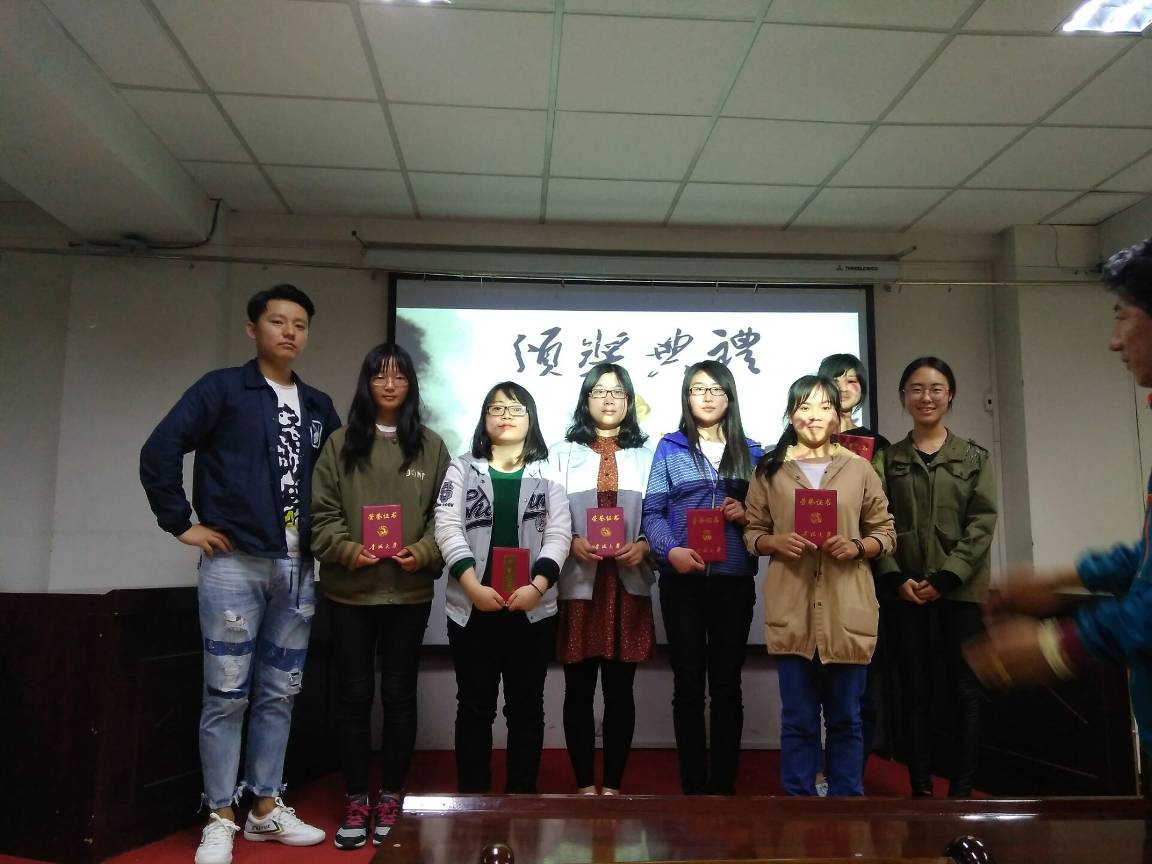 经过初选脱颖而出的12名优秀选手,在赛场上激情四射、唇枪舌战、妙语连珠,披荆斩棘攻克“先入为主”、“图文并茂”、“添字为语”、“心有灵犀”、“从一而终”、“扭转乾坤”、“抢答解答”等层层难关,赢得了在场同学们的阵阵掌声和喝彩欢呼声。最终经过评委和同学们的打分,层层严格评选,夏弋晰同学获得一等奖,黄倩倩、张天华同学分别获得二等奖,伍燕、梁欣悦、荆梦竹同学分别获得三等奖。院学生会主席刘士远为获奖者颁奖并留影。