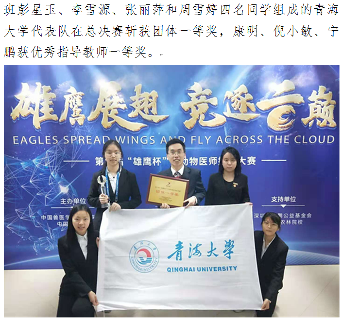 探花av 代表队在全国第五届“雄鹰杯”小动物医师技能大赛总决赛斩获团体一等奖