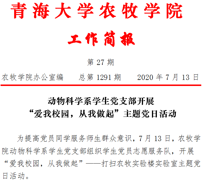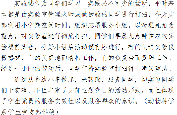 动物科学系学生党支部开展“爱我校园,从我做起”主题党日活动