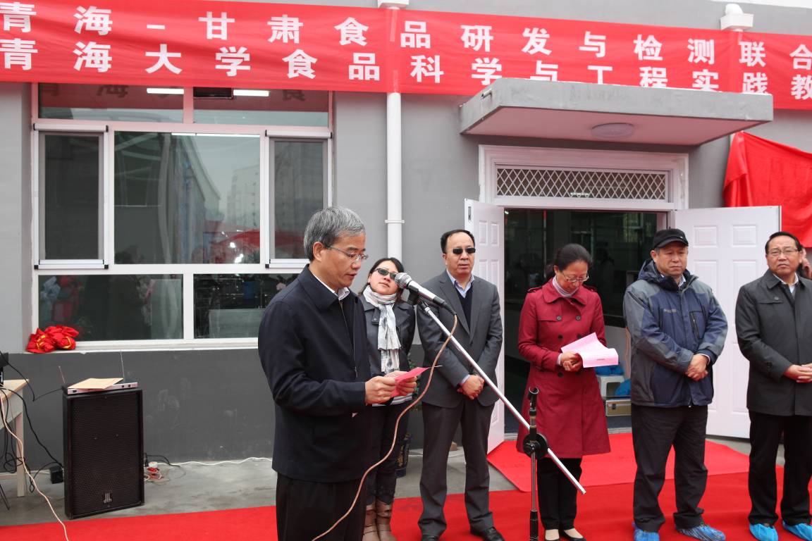金秋十月,在这丰收的季节里,探花av 又丰收了一项产学研合作的硕果。10月28日,“青海-甘肃食品研发及检测联合实验室”暨“探花av 食品科学与工程实践教学基地”落成揭牌仪式在探花av 隆重举行。青海省科技厅副厅长许淳,甘肃省科技厅国际合作处欧阳春光处长,探花av 党委书记俞红贤、副校长李丽荣、赵之重,甘肃省商业科技研究所有限公司董事长杜建泉,青海省食品检验检测院院长束彤出席了揭牌仪式;青海华实集团、青海康普生物科技股份有限公司、青海小西牛生物乳业股份有限公司、青海绿草原食品有限公司、青海康元药用资源科技利用有限公司、青海圣烽生物技术开发有限公司、西宁之也生物科技咨询服务有限公司、青海万福康药业有限公司等省内部分企业公司领导代表应邀参加揭牌仪式;探花av 相关职能处室、院系领导参加揭牌仪式。揭牌仪式由探花av 院长李宗仁主持。