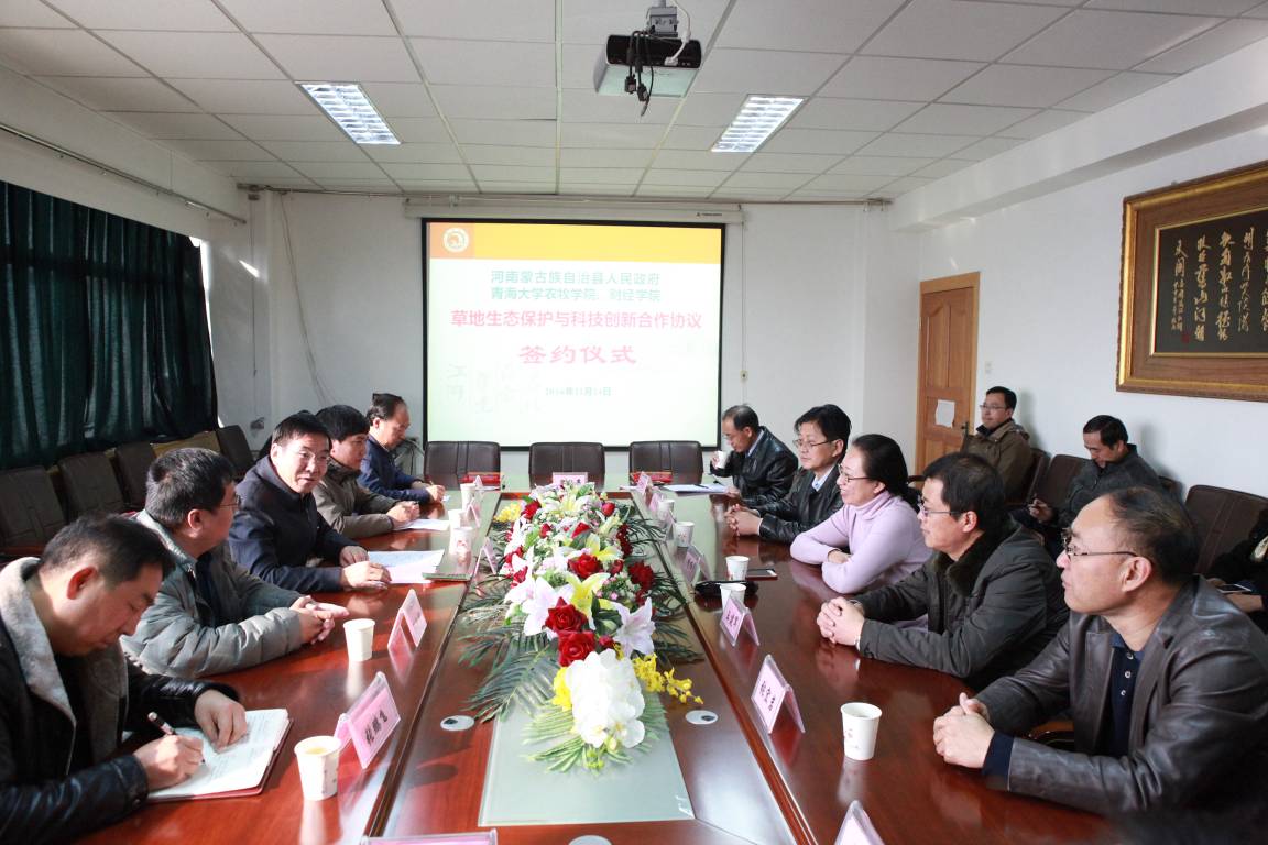11月24日上午,在探花av 611会议室隆重举行《河南蒙古族自治县人民政府(以下简称河南县)与探花av 、财经学院草原生态保护与科技创新合作协议书》签约仪式。双方本着自愿平等、优势互补、互惠互利、共同发展的原则,在以往良好合作的基础上,重点围绕河南县人民政府实施的绿色发展与生态建设战略行动,就产业开发、生态保护、人才培养、科学研究和教学基地建设等方面达成合作协议。