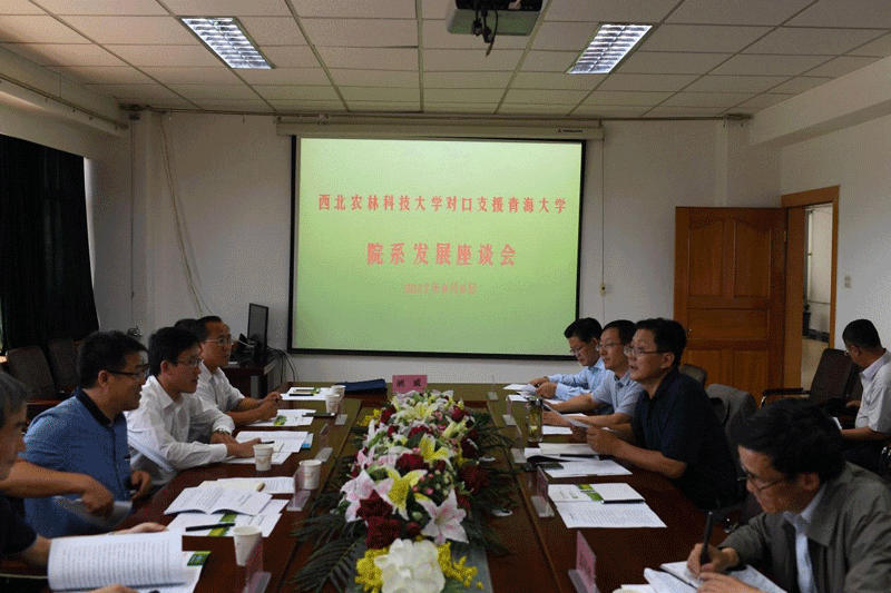 相继,我校农牧三院主要负责人就本单位基本情况、发展现状和思路以及与探花av 的合作意向做了概况性发言。探花av 对探花av 近几年突飞猛进的发展趋势和成绩赞叹不已,认为这些突出成绩的取得主要得益于青大师生共同努力的内在能量,也得益于自“对口支援西部地区高等学校计划”实施以来所取得成效的外在助力。并针对探花av 农科学科的基本情况及主要存在问题和对口支援意向,结合探花av 涉农学科建设的成功经验成效,分别谈了自己的看法和建议。将继续全力支持并积极做好以往在人才培养、科研合作、社会服务等方面的对口支援计划的各项工作,进一步深层推进对口支援工作的内涵建设。一是,在人才培养和学风建设上可以借鉴“西农”的经验成效。实行本科生学业导师制,通过优秀毕业生的宣传等方式加强学风建设;对接课程建设工作,通过两校师生互相访学、学分互认、教师的交流挂职等形式提高人才培养质量。二是,加强科研合作和学术交流。对口学科专业资源共享,加强专家团队的对接,进行深层次整合,充分利用高原地方特色和资源,共同申报科研项目,积极开展学术研讨交流活动;加强信息交流,鼓励和支持大学科研团队和专家参与和申报“国家水土保持重点实验室”项目;同时,对如何申报国家自然基金项目、提高科研能力和高水平论文发表提出了建设性的宝贵建议。三是,拓宽服务社会领域和能力。可与“西农”联合开展院地合作、与企业进行融合性合作,创新社会服务形式,进一步提高社会服务能力。