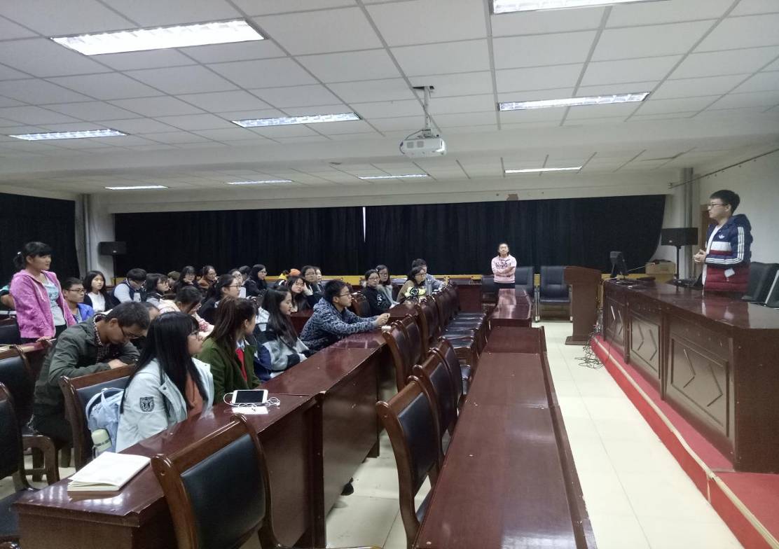 会上,吴海庆老师首先说明举办分享会的目的和意义,希望在场同学们通过与三位同学的交流,能进一步明确自己的奋斗目标和职业规划,掌握更好的学习方法,刻苦学习、大胆实践、成长成才。