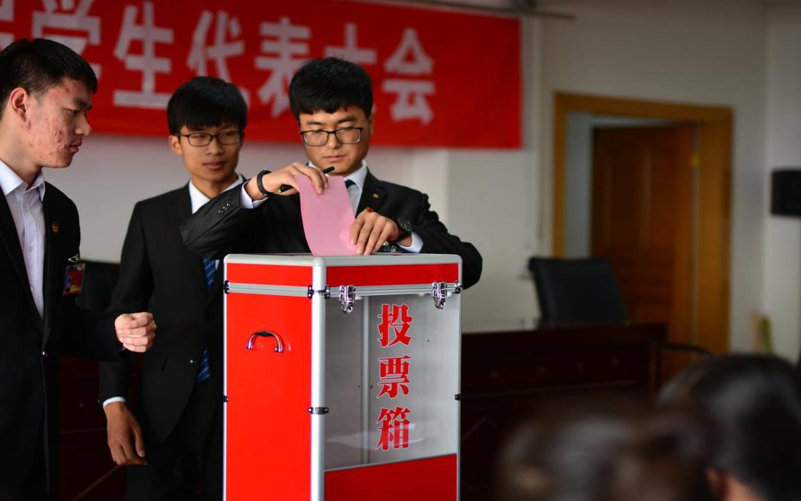 在第二次大会上,工作人员宣读了第六届学生会主席团候选人建议名单及选举办法,各主席团候选人进行竞选演讲,学生代表们轮流进行投票,最终的投票结果是李治军、王迪、赵林海、邹潇潇和王维哲同学当选第六届学生会主席团成员,新一届主席团成员紧接着召开了第一次会议,确定由李治军同学担任第六届学生会主席。王梦杰同学作了本次大会代表提案的报告,代表们通过了大会决议。