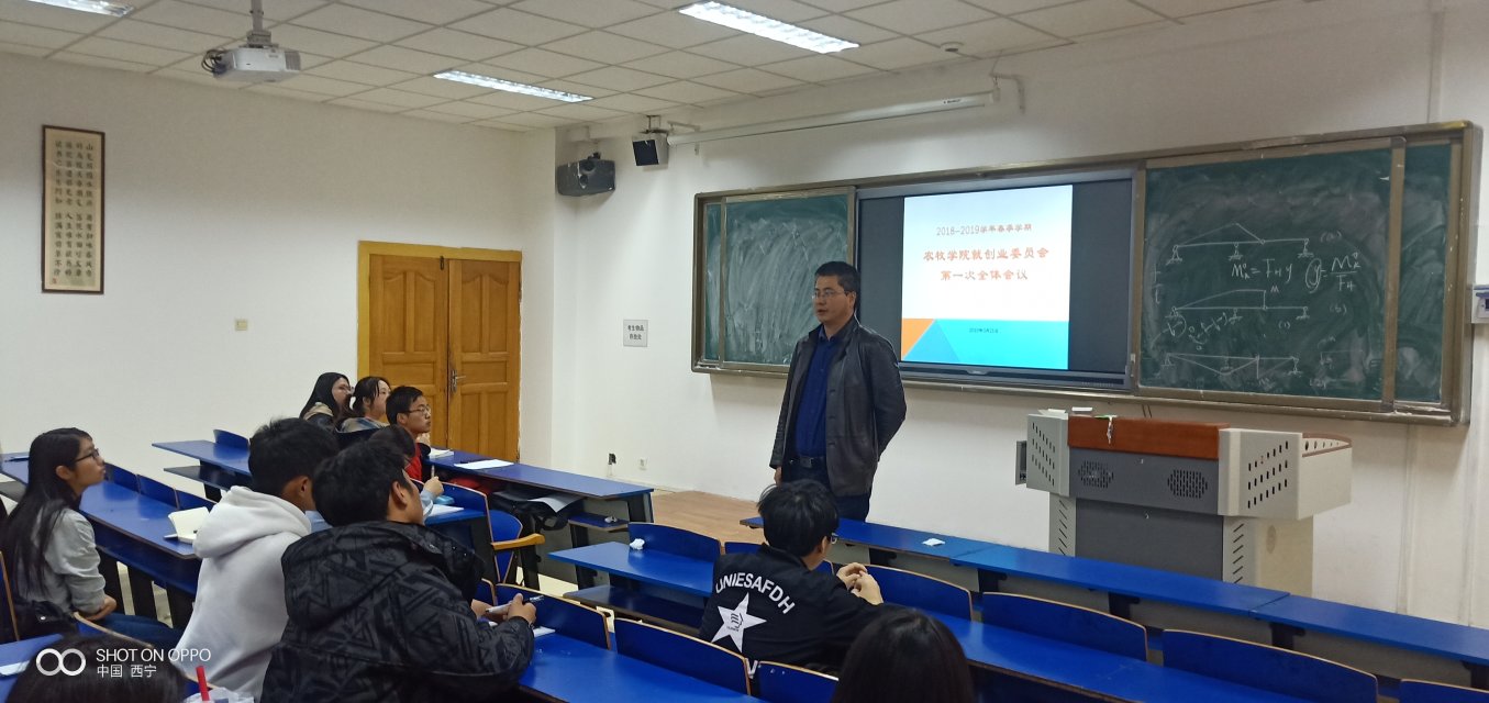 3月21日晚上,在农牧楼102教室组织召开了院学生就创业委员全体会议,院学生管理部吴海庆老师和学生会副主席、系团总支就创委员及各班级就创业委员参加会议。会议由学生就创业委员会主任周孝娟同学主持。