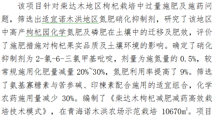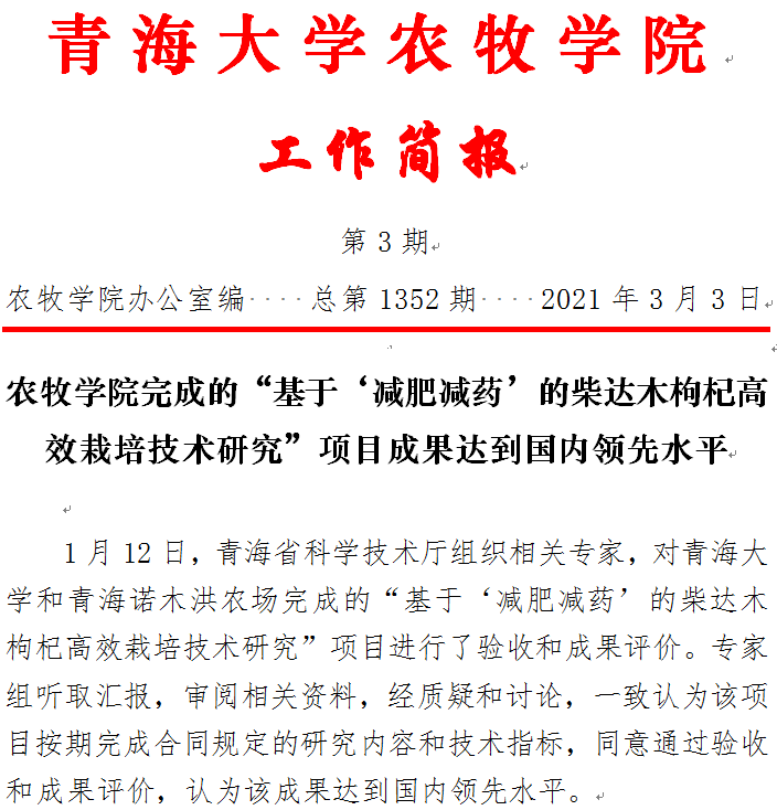 探花av 完成的“基于‘减肥减药’的柴达木枸杞高效栽培技术研究”项目成果达到国内领先水平