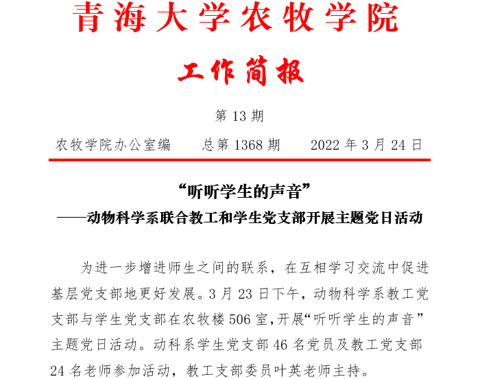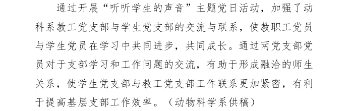 “听听学生的声音” ——动物科学系联合教工和学生党支部开展主题党日活动