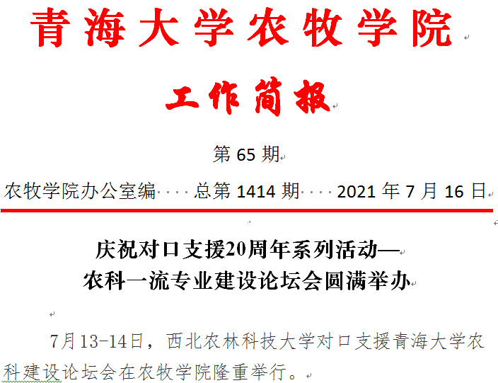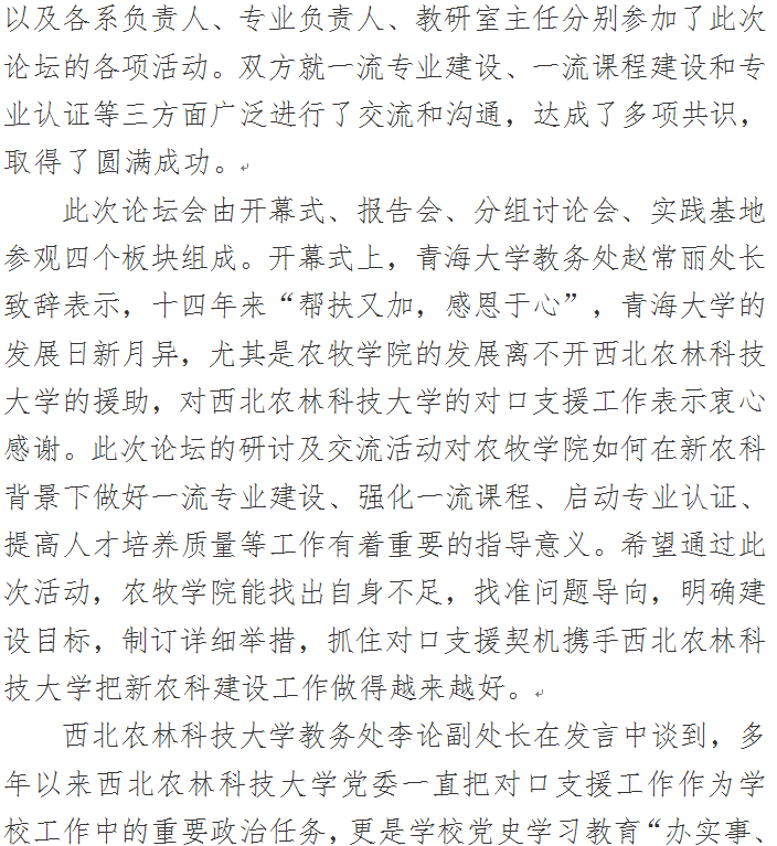庆祝对口支援20周年系列活动—农科一流专业建设论坛会圆满举办